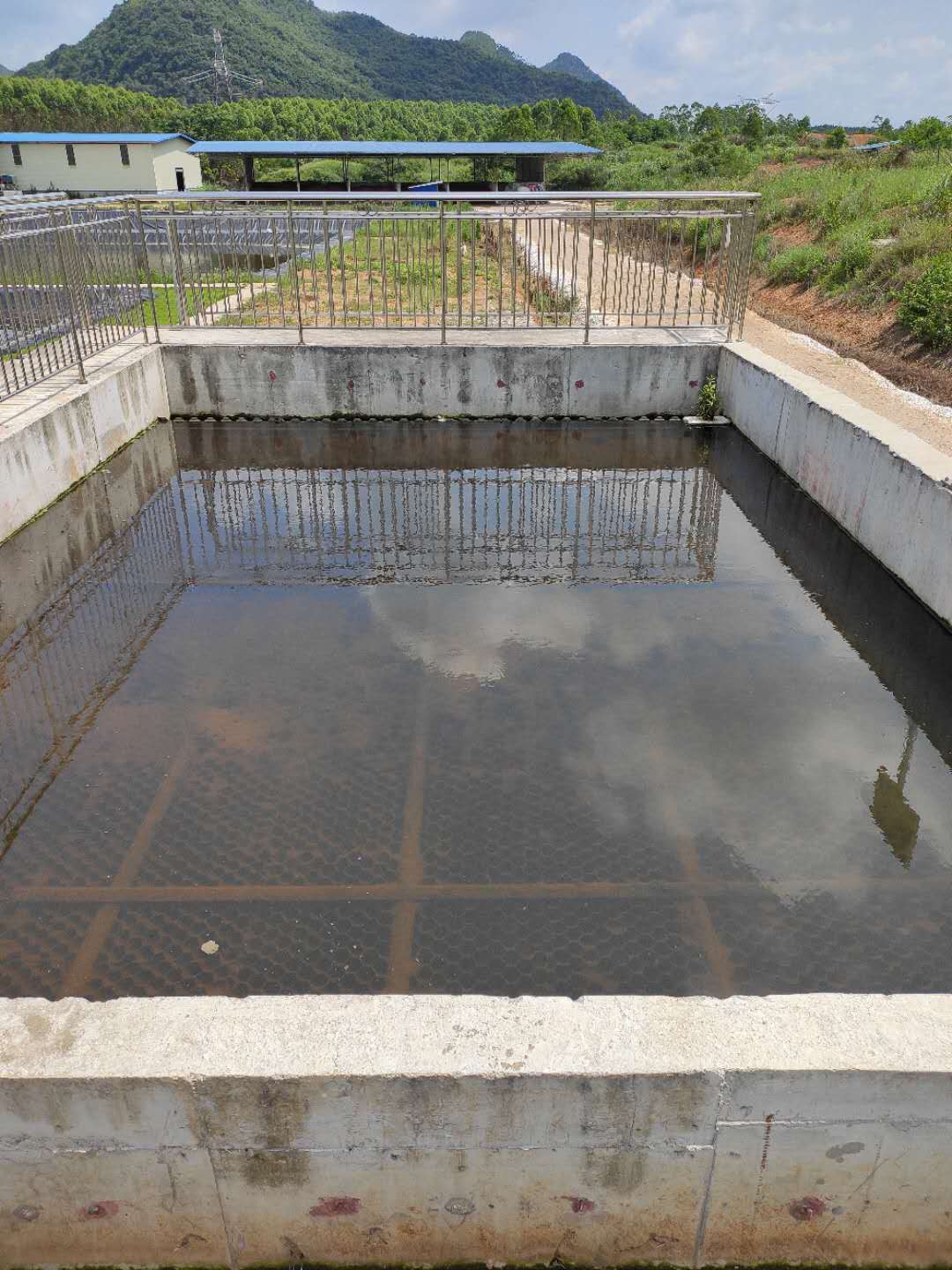 該項目存欄為10000頭母豬,清糞工藝采用V刮+水泡。因地制宜我司采用黑膜結(jié)構(gòu)的厭氧+兩級AO+配水塘工藝。此工藝投資成本低、運行穩(wěn)定、耐沖擊負荷能力強,實際出水指標達到《綜合一級排放標準》。設(shè)備+土建投資成本約1萬元/噸污水。